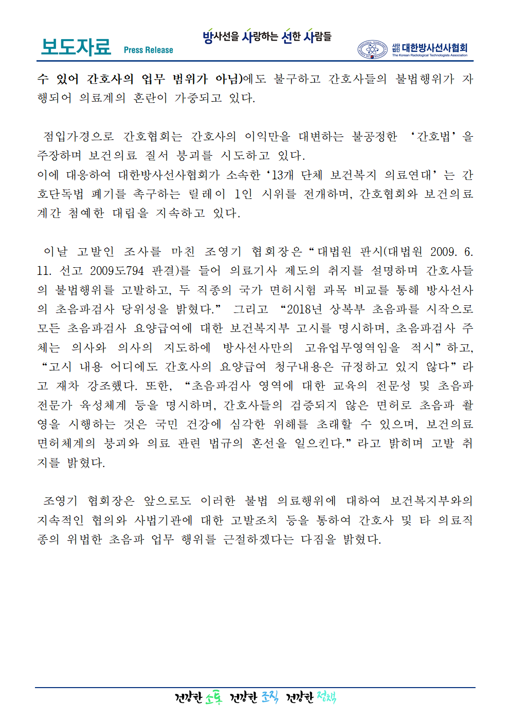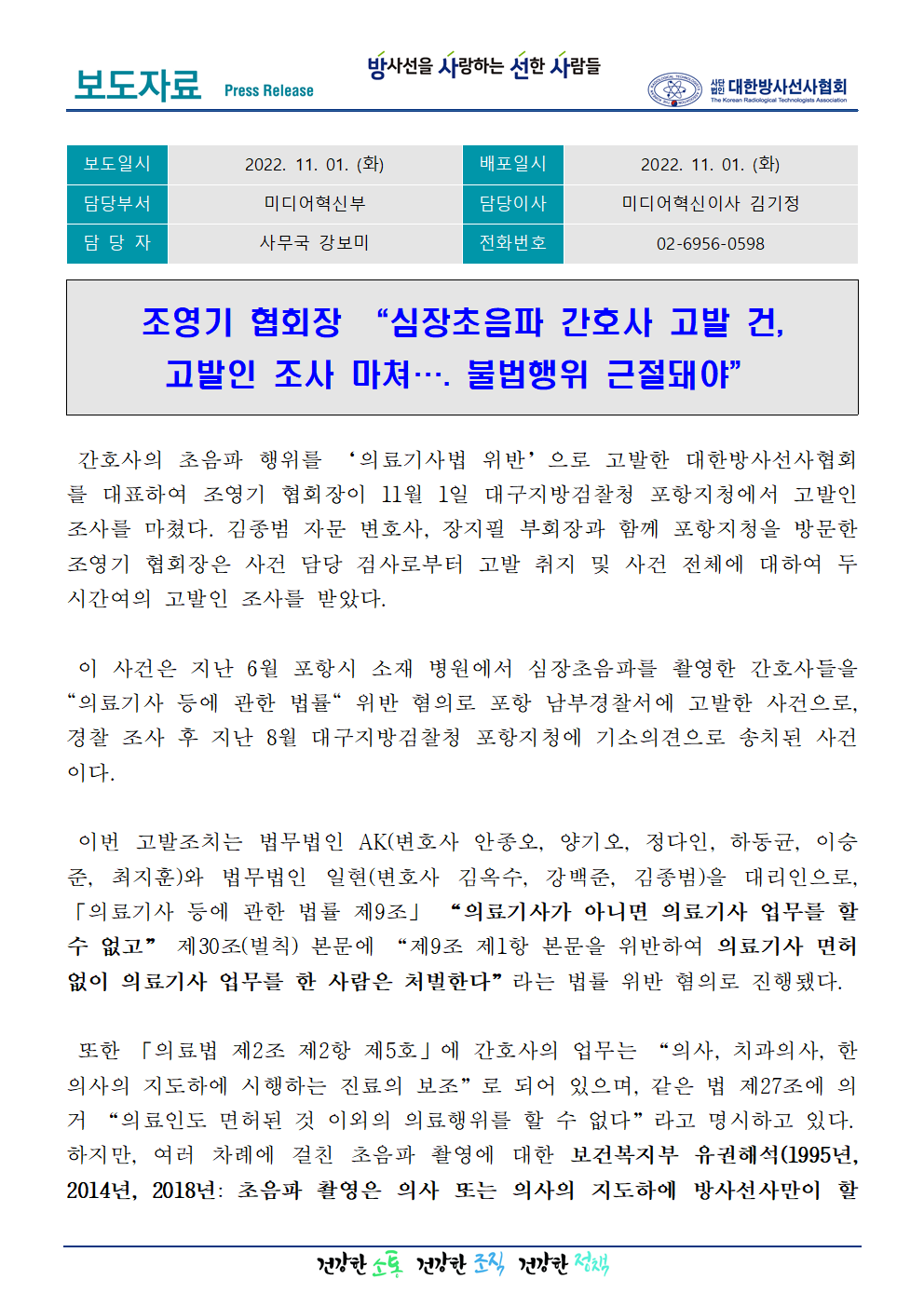 [미디어혁신부 52] 조영기 협회장 “심장초음파 간호사 고발 건, 고발인 조사 마쳐... 불법행위 근절돼야”
