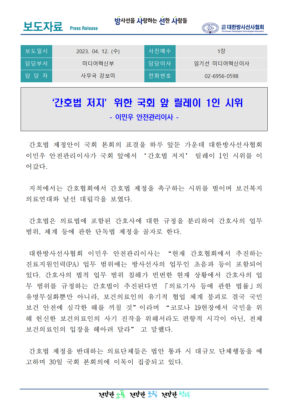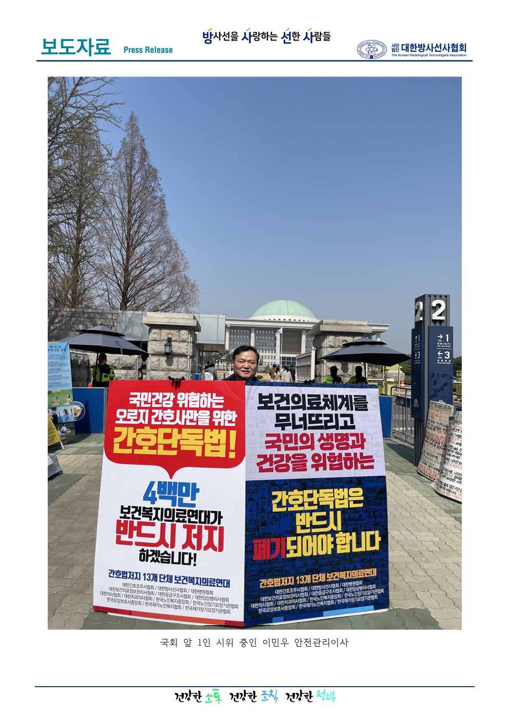 [미디어혁신부] ‘간호법 저지’ 위한 국회 앞 릴레이 1인 시위_이민우 안전관리이사